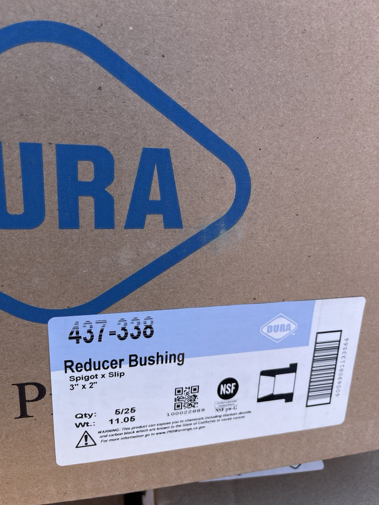 (5 PC PACKAGE) DURA 3" X 2" PVC SS REDUCER BUSHING 437-338 *FREE SHIPPING*