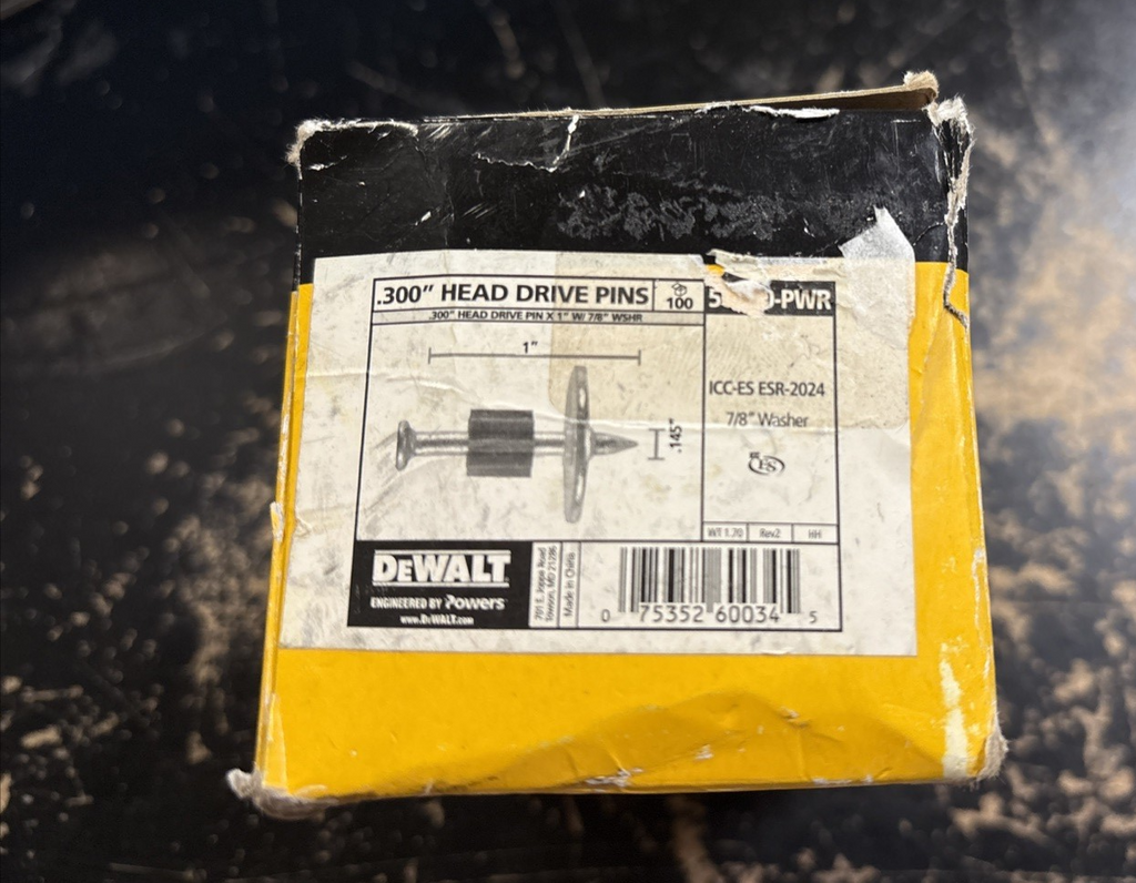 DeWALT 50090-PWR 1" x .300" Head Pin with 7/8" Washer (100 PK)