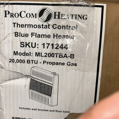 ML200TBA-B Ventless Propane Gas Blue Flame Space Heater with Thermostat Contr...