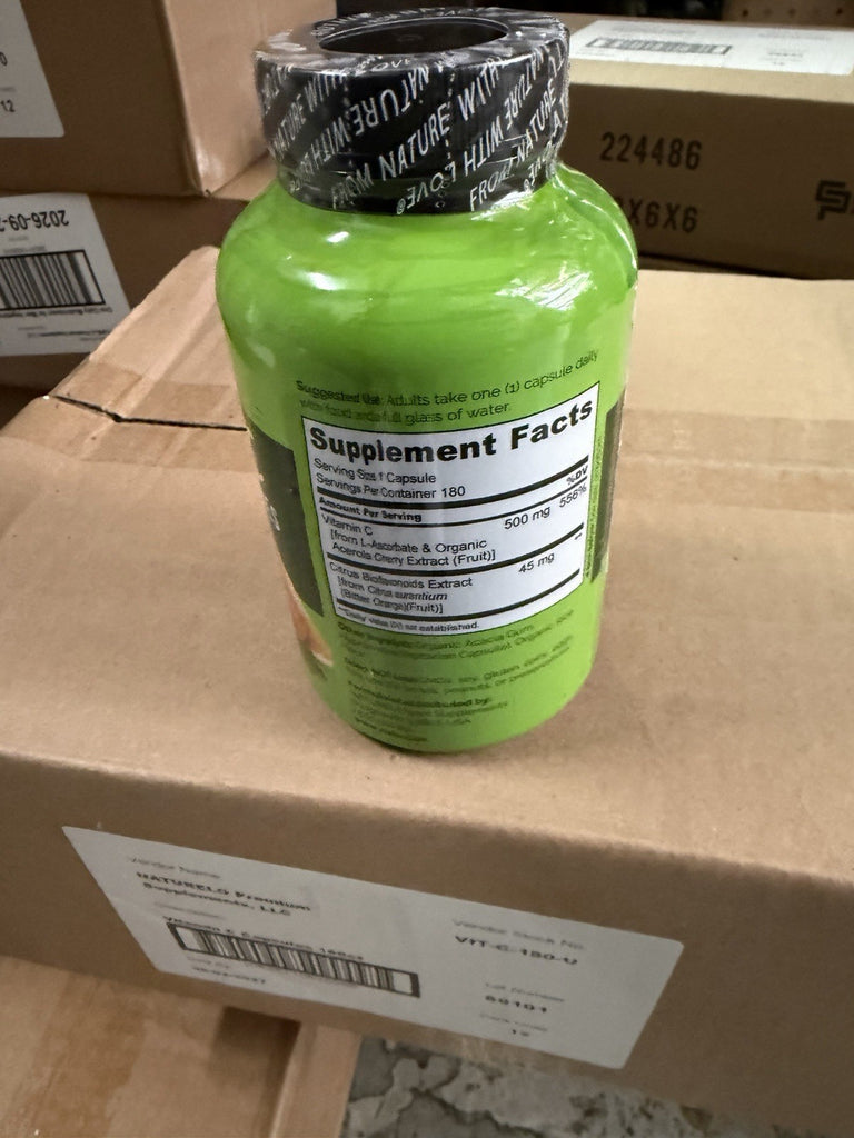 NATURELO Vitamin C with Organic Acerola Cherry Extract and Citrus Bioflavonoids - Vegan Supplement - Immune Support - 500 mg VIT C per Cap - Non-GMO - 180 Capsules