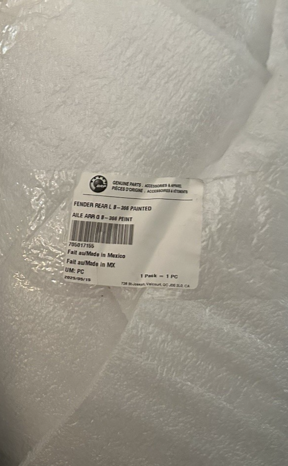 NEW CAN-AM OEM LH REAR FENDER PLATINUM SILVER SATIN MODEL 705017155 ships free