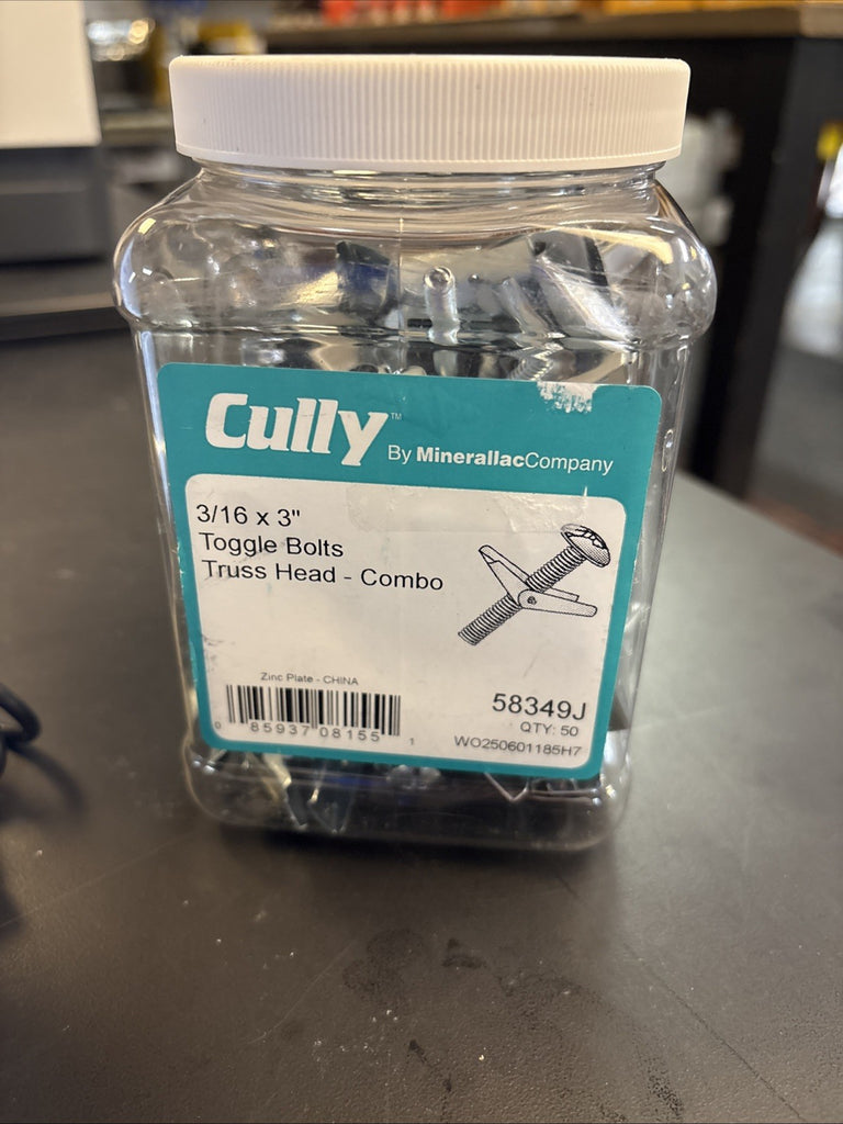 NEW CULLY 3/16 x 3" TOGGLE BOLTS TRUSS HEAD COMBO - 58349J (50 PK)