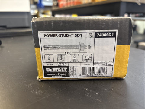 NEW DeWALT  1/4" x 1 3/4" Power-Stud Carbon Steel Wedge Anchor - 7400SD1 (100 PK)
