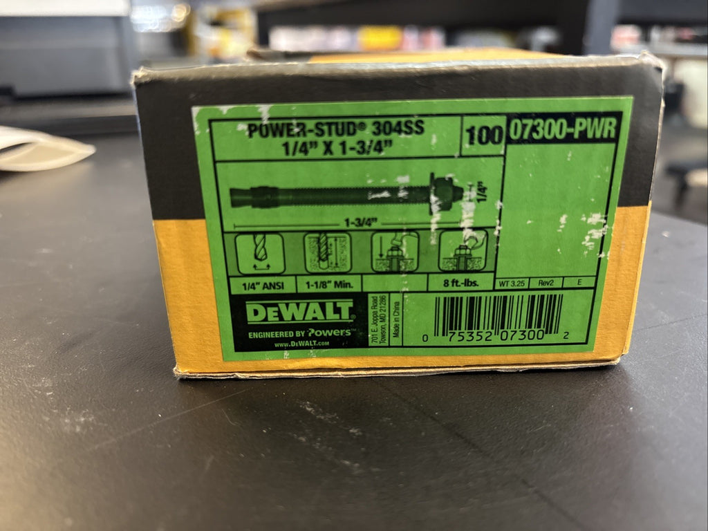 NEW DeWALT 1/4" x 1 3/4" Wedge Anchor, PWR-STUD 304SS - 07300-PWR (100 PK)