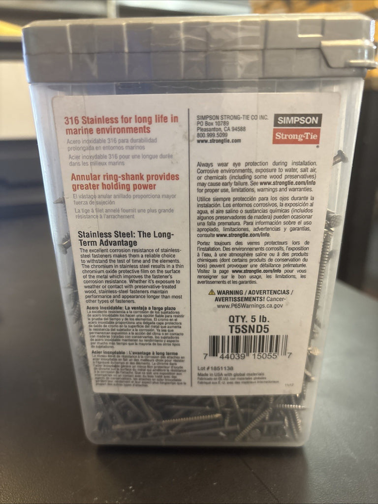 NEW Simpson Strong-Tie 5D 1-34" Wood Siding Nail, 316SS - T5SND5