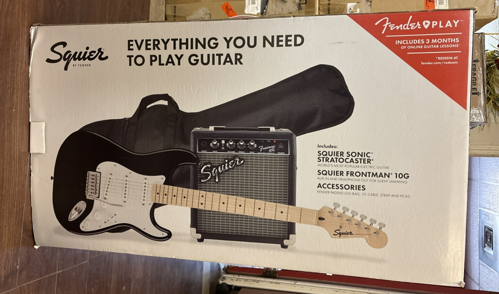 NEW Squier Sonic Stratocaster Electric Guitar Pk w/ Fender Frontman 10G Amp BLCK