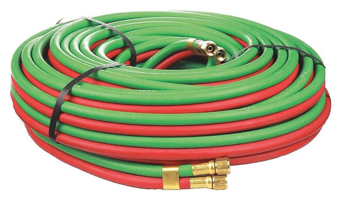 Radnor 14"X 100' Red Green Synthetic Rubber Twin Hose w/BB Hose Fittings