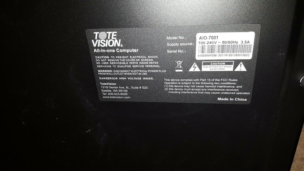 TOTE VISION 70” Multi-Touch PC Monitor AIO-7001 (FOR PARTS ONLY, SCREEN DAMAGED)