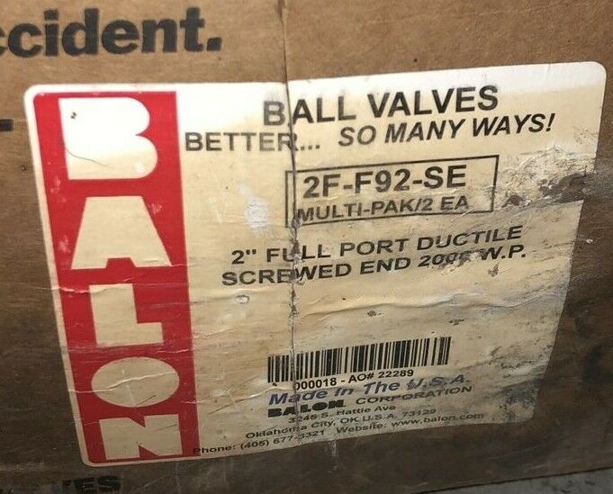 1 BALON BALL VALVES 2F-F92-SE 2” FULL PORT DUCTILE SCREWED END 2000 W.P (2 PACK)
