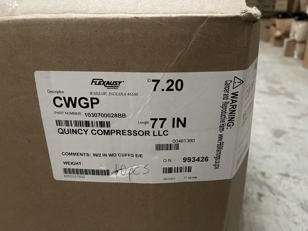 (10) Manguera para conducto de polvo FLEXAUST CWGP de 7,20" de 77" de largo, con MANGUITOS DE 2" DE ANCHO E/E, 1030700028 (10) Flexaust Cwgp 7.20" Polvo Ducto Manguera 77" L, Con / 2" WD Puños E/E ,