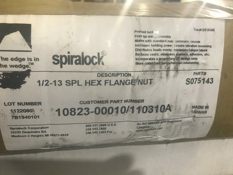 (100) HEX FLANGE NUTS , BLACK SPL, 1/2"-13 , SPIRALOCK