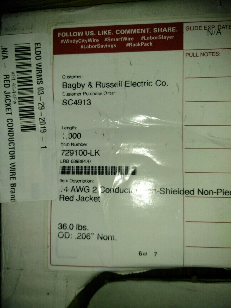 14 AWG 2 conductores Cobre desnudo, sin blindaje Tipo de alarma contra incendios sin plenum FPLR UL14 Awg 2 Conductor Cobre Pelado, Non-Shielded Non-Plenum Fuego Alarma Tipo Fplr