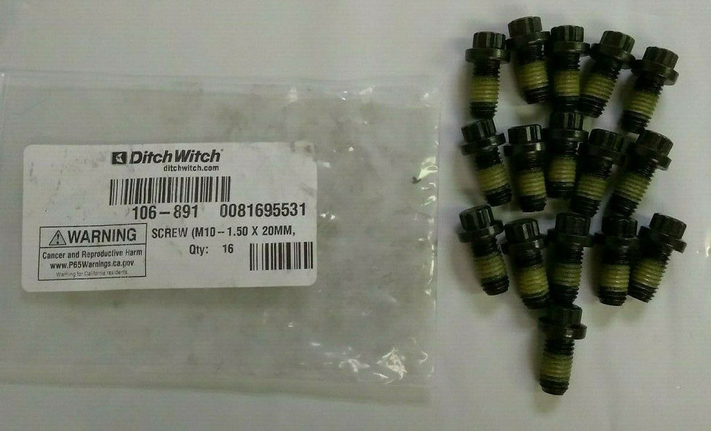 16 Pack -BRAND NEW OEM Ditch Witch 106-891 SCREW M10-1.50 X 20MM