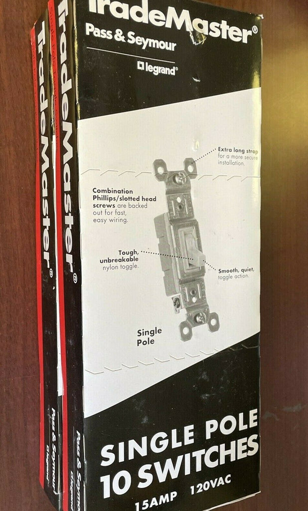 (2) NEW Lot 10 Pack Pass & Seymour TradeMaster Legrand Single Pole Light Switch