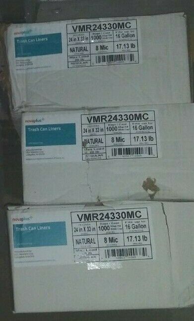 (3 CASES) NEW NOVA PLUS TRASH CAN LINERS 24" X 33".1000 BAGS PER CASE VMR24330MC