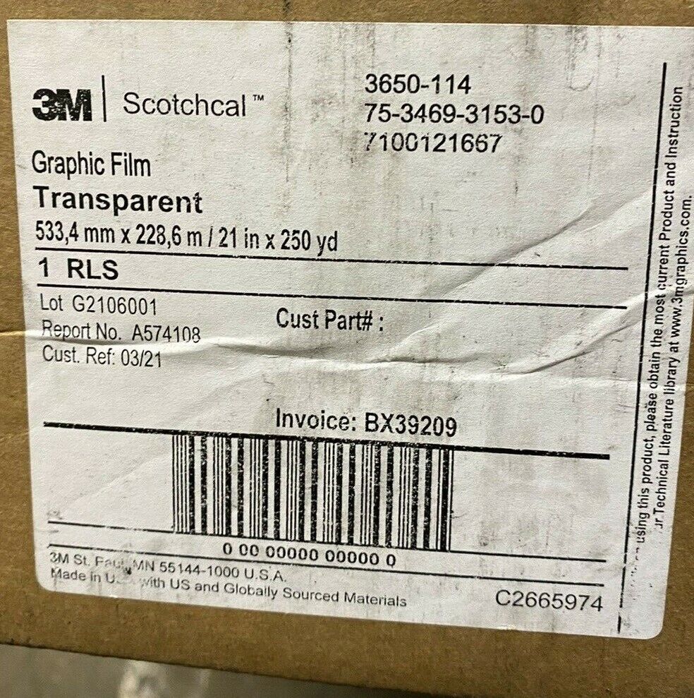 3650-114 SCOTCHCAL GRAPHIC FILM TRANSPARENT 533 / 4MM X 228 6M / 21IN X 250 YD3650-114 SCOTCHCAL GRAPHIC FILM TRANSPARENT 533 / 4MM X 228 6M / 21IN X 250 YD