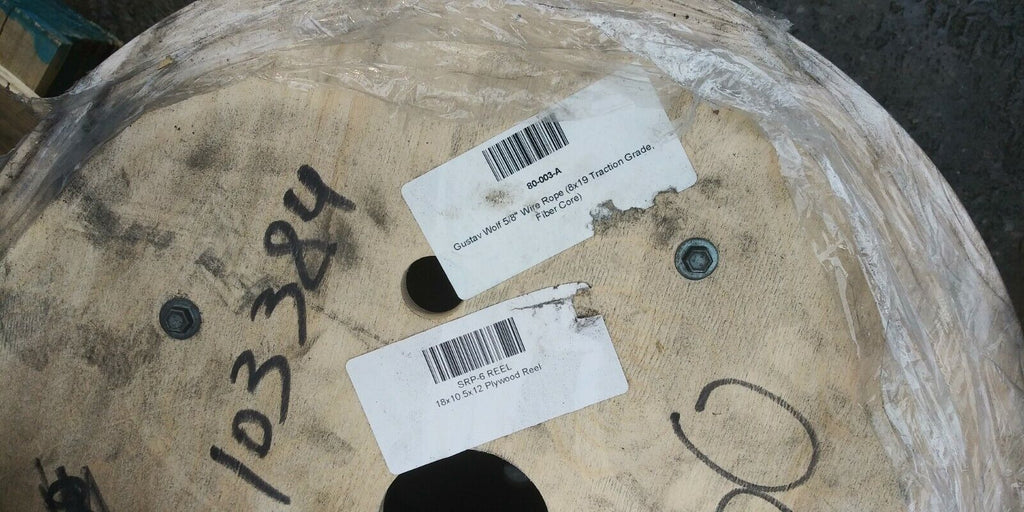 (4) 75FT SPOOLS OF GUSTAV WOLF 5/8" WIRE ROPE (8X19 TRACTION GRADE, FIBER CORE)