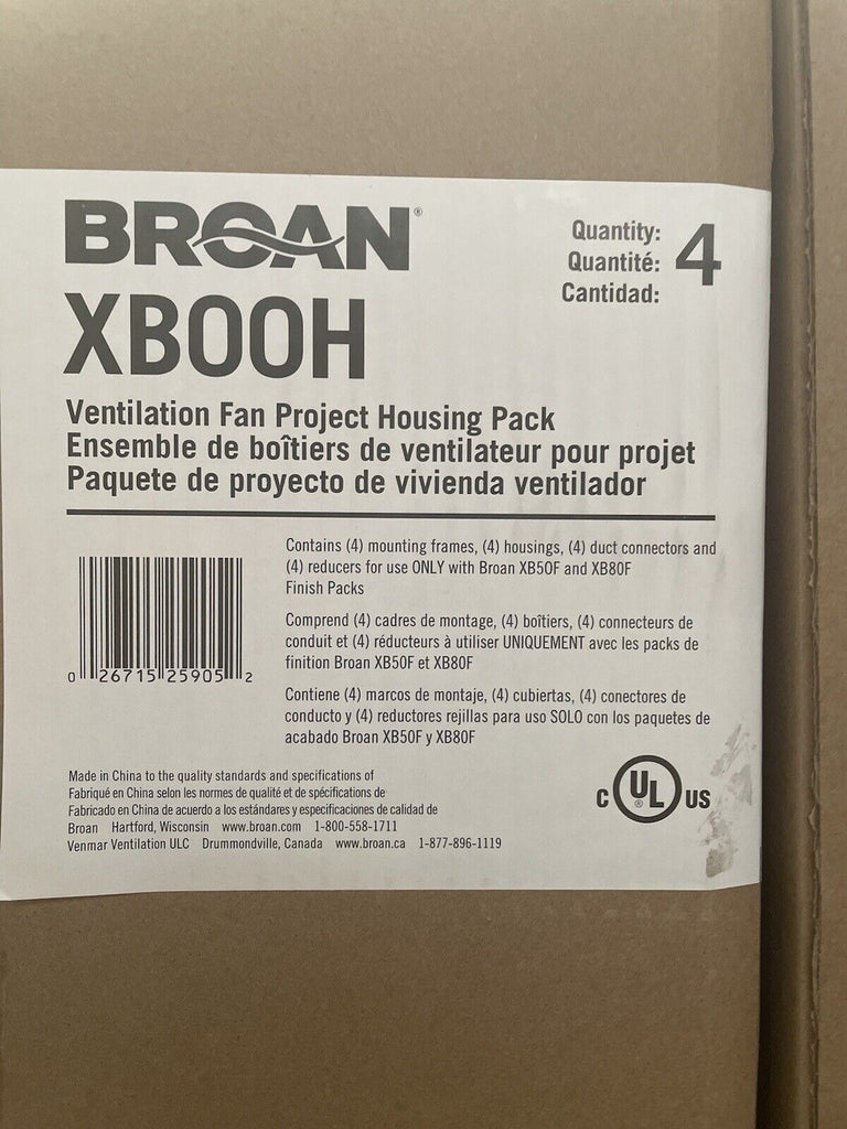 NEW BROAN XB00H Ventilation Fan Housing Pack(4PK) NEW BROAN XB00H Ventilation Fan Housing Pack