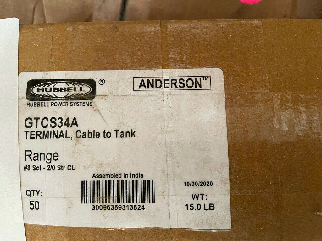50/CASE HUBBELL POWER SYSTEMS TERMINAL, CABLE TO TANK RANGE #8 SOL - 2/0 STR CU