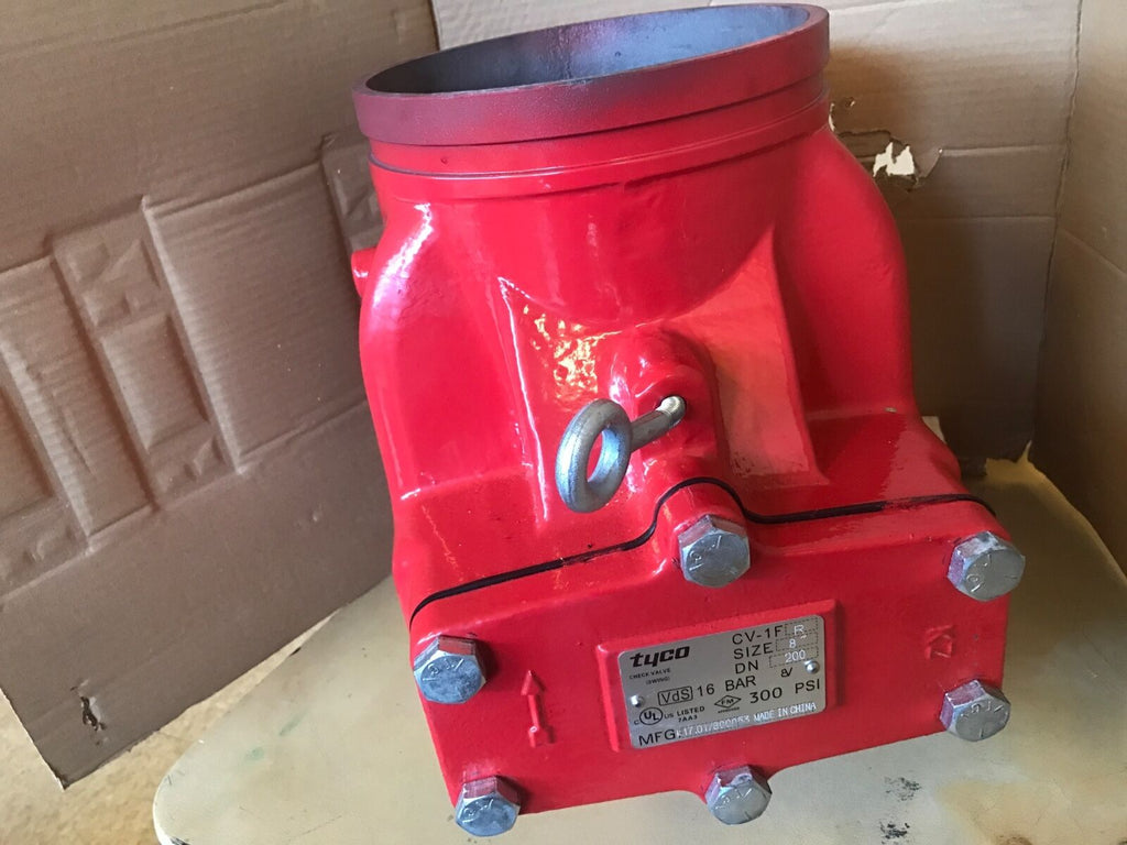 Specifications  Brand Name  Tyco Fire  Category  Fire Protection  Connection  Grooved  Figure Number  CV-1FR  Manufacturer  Tyco Fire  Size  8 In  Standards  UL, FM, C-UL  Type  Shotgun Riser Check Valve  Web Shorter Desc  8 In Tyco CV-1FR Grooved Shotgun Riser Check Valve