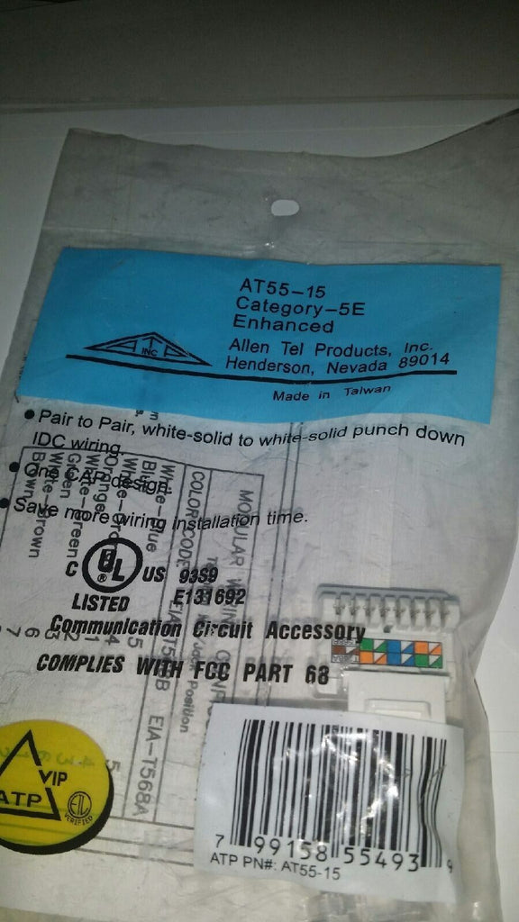 ALLEN TEL (4 jacks) AT55-15, CATEGORY 5E JACK MODULE, WHITE, 1 PORT