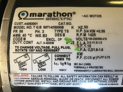 Alliance SPEED QUEEN UNIMAC 44053001 Dryer MOTOR D 200-415/50/3 3/4HP