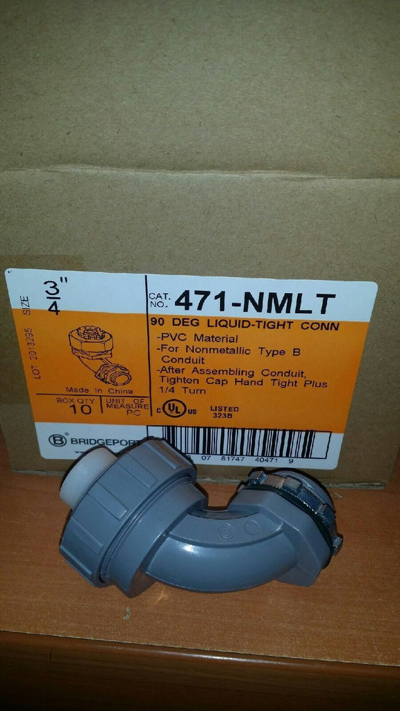 BOX OF 10 BRIDGEPORT FITTINGS 471-NMLT 3/4" 90 DEG liquid tight