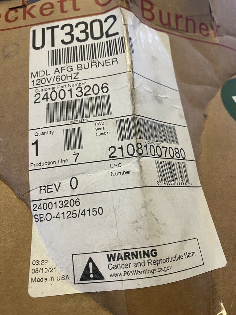 BRAND NEW BECKETT OIL BURNER AFG MDL – 120V/60HZ Part No.: UT3302 B20 READY