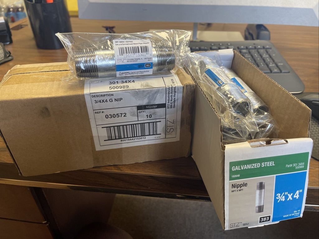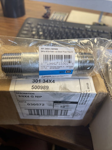 (CASE OF 10) 301 34X4, 500989 3/4" X 4" GALVANIZED STEEL PIPE NIPPLE, SHIPS FREE