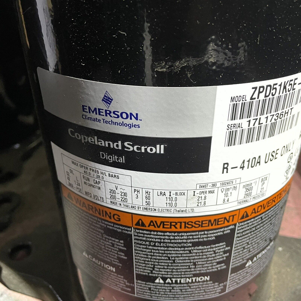 Emerson R-410A ZPD51K5E-TFE-130 Copeland Défilement Numérique 2-5 HP ZPD51K5ETF5130 Emerson R-410A ZPD51K5E-TFE-130 copeland Scroll Numérique 2-5 HP ZPD51K5ETF5130