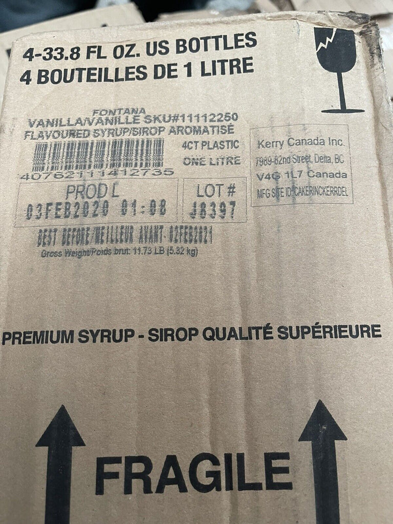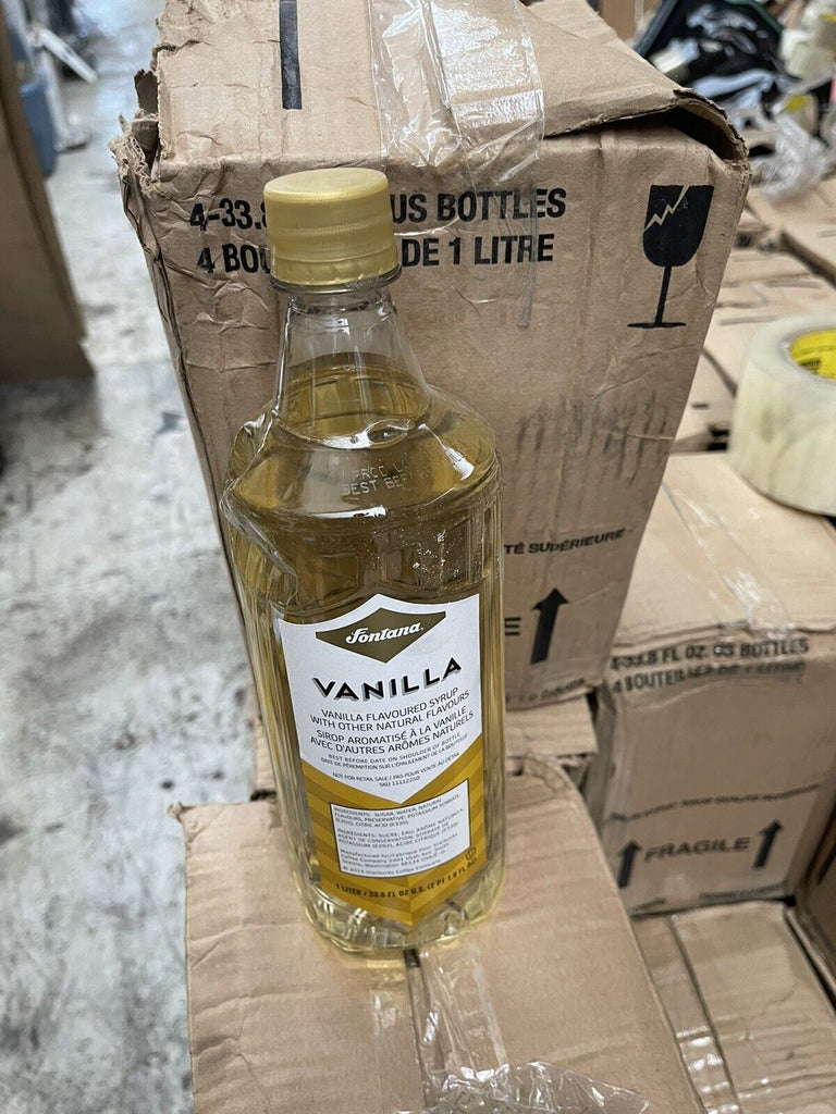 (Caja de 4) Botella de jarabe de 1 litro de vainilla Fontana de Starbucks, EXP 2/2/2021(Funda De 4) FONTANA Vainilla 1 Litros Sirope Botella De Starbucks, Exp 2/2/2021