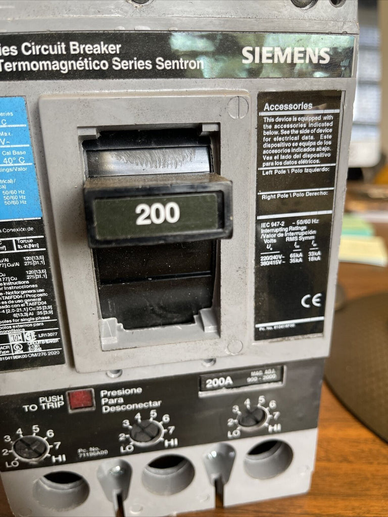 FXD63B200 Siemens Circuit Breaker Sentron Series FXD 200A 600V Bolt-On LI - Long