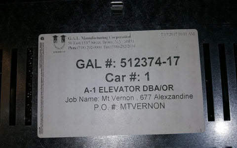 G.A.L. ELEVATOR DEVICES GAL# 512374-17 CAR# 1 A-1 ELEVATOR PARTS
