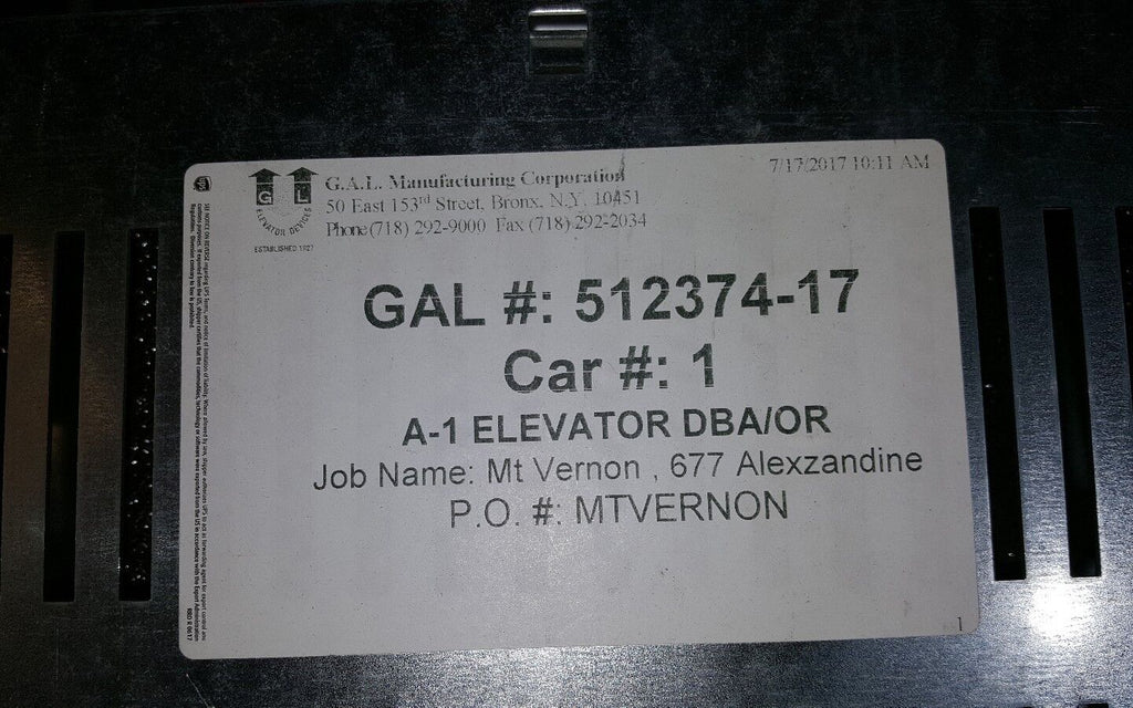 G. A. L. Elevator Devices GAL #512374-17 Car #1 A-1 Elevator Parts