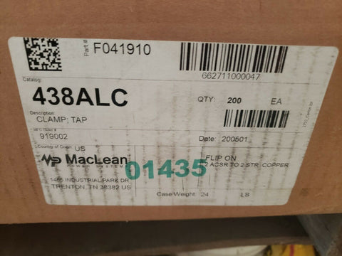 GENUINE MACLEAN STANDARD ALUMINUM TAP CLAMP 438 ALC (50 PC BOX)