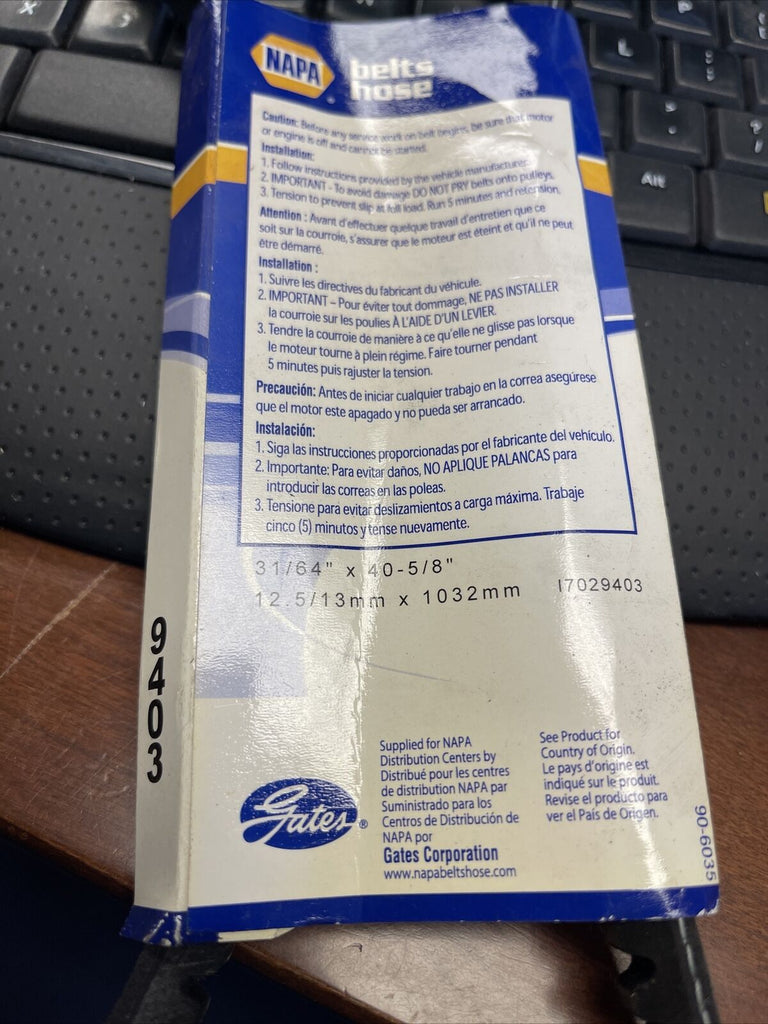 GENUINE NAPA GATES 25-9403, 9403 Belt Premium XL BELT 31/64" X 40-5/8"