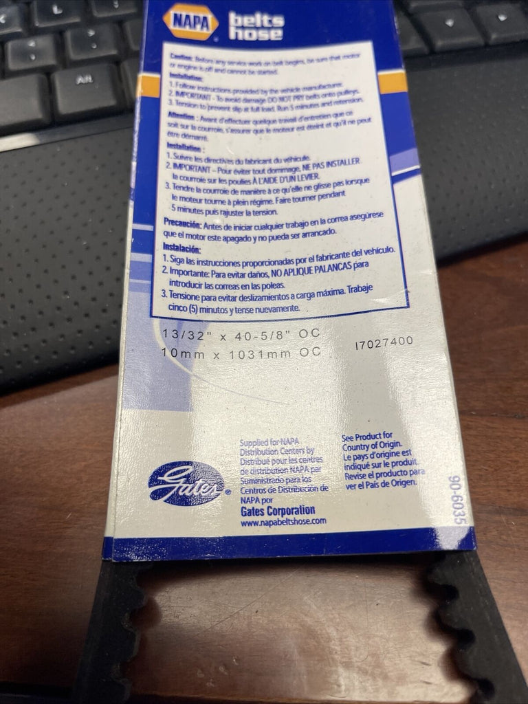 GENUINE NAPA GATES  7400, 25-7400 XL BELT 13/32" X 40-5/8" *SHIPS FREE*