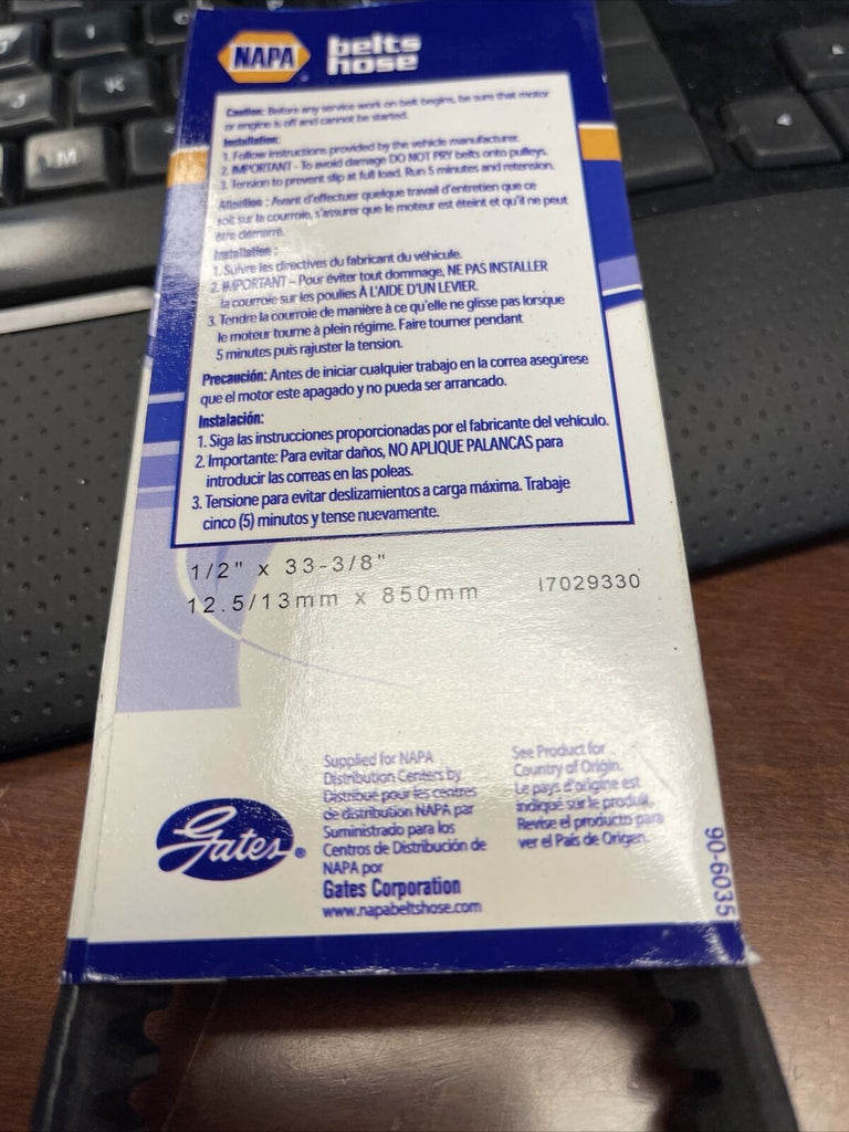 GENUINE NAPA GATES AUTOMOTIVE BELT 25-9330, 9330, 1/2" X 33-3/8" *FREE SHIPPING*