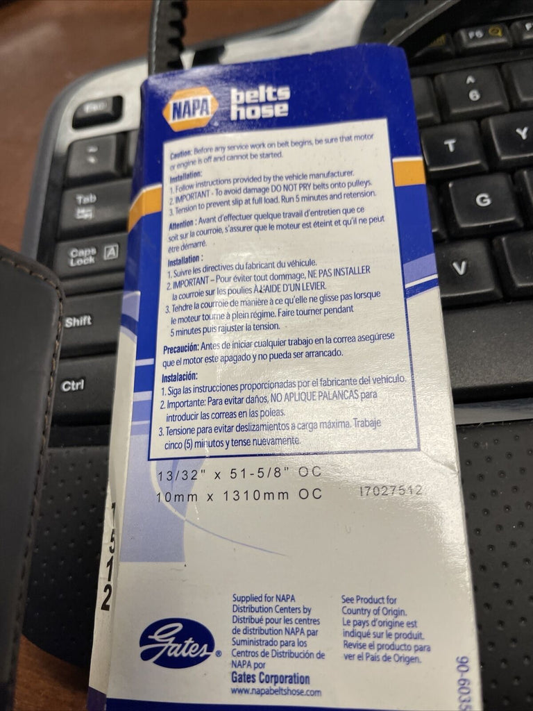 GENUINE NAPA GATES Automotive XL 25-7512 Belt, 13/32" X 51-5/8" *FREE SHIPPING*