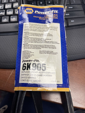 GENUINE NAPA GATES POWER-FIT V-RIBBED BELT 6K905, 25-060905, K060905, 5060905, 4060905