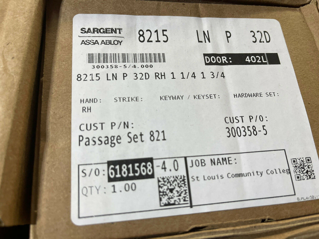 GENUINE Sargent 8215 LN P 32D RH 1 1/4 1 3/4 Manufacturing Mortise Lock
