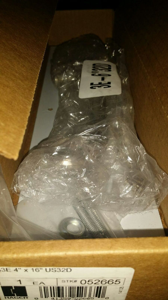 Hager 052665 33E 4" x 16" US32D Pull Plate Square Corner 30S Plate, 3E Pull