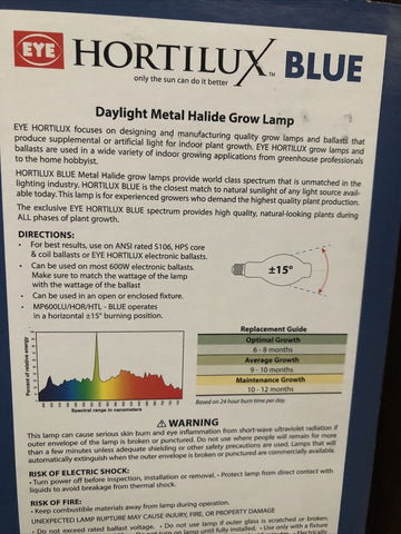 Hortilux Blue Metal Halide (MH) Lamp 600W HPS lamp Metals Halide Grows Bulb