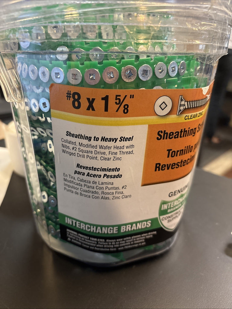 INTERCHANGE BRAND #8 x 1-5/8" SHEATHING SCREWS, FINE THREAD, COLLATED - 1000 PK