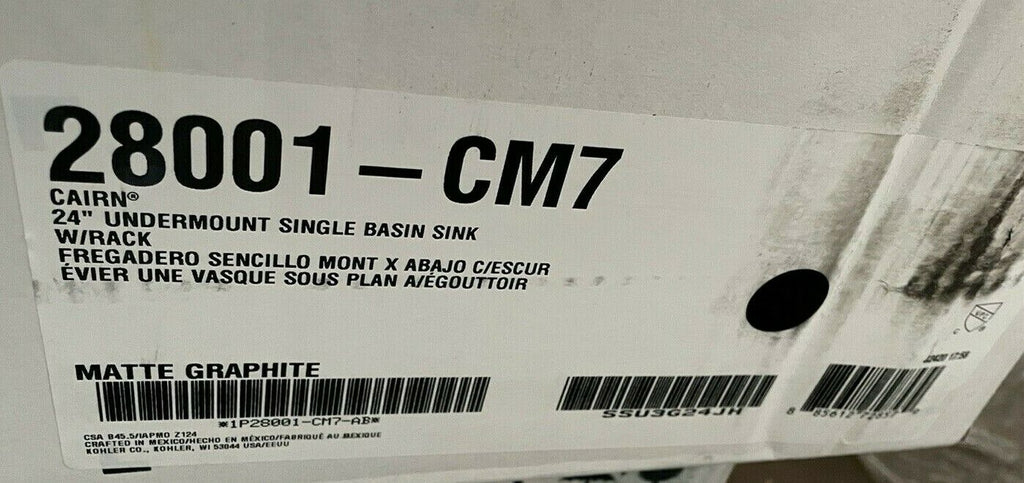 Kohler Cairn 28001 -c24-1/2" Undermount Single Basin Composite Kitchen Sink -WITH RACK
