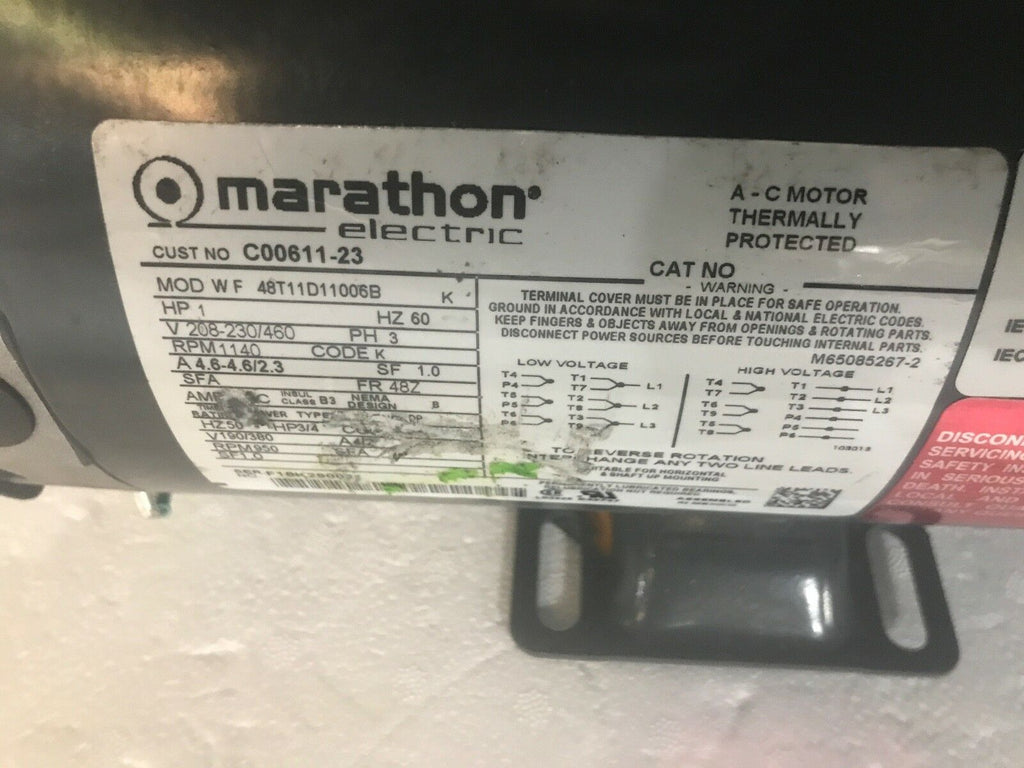 MARATHON MOTOR 208-230/460 V 1140 Rpm 3/4hp Keyed Shank 48t11d11006b