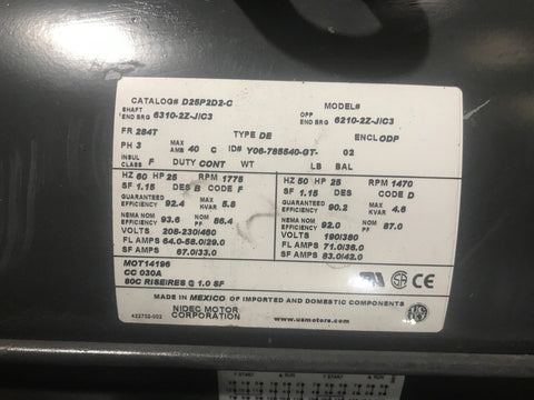 Y06-785540-GT MOT14196 Motor Manufactured by Trane - Allied Controls 25 HPMOT14196 Motor Manufactured by Trane - Allied Controls 25 HP