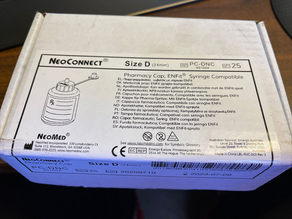 Neomed NeoConnect ENFit Compatible Pharmacy Caps, Size D, 24mm, 25 pc box