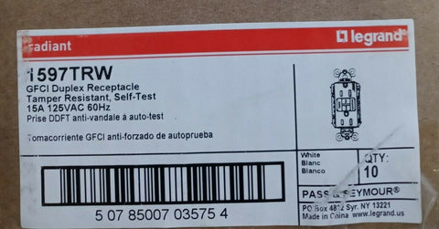 NEW 10 PACK Legrand Radiant 1597TRW Tamper Resistant GFCI Outlet 15A White NIB