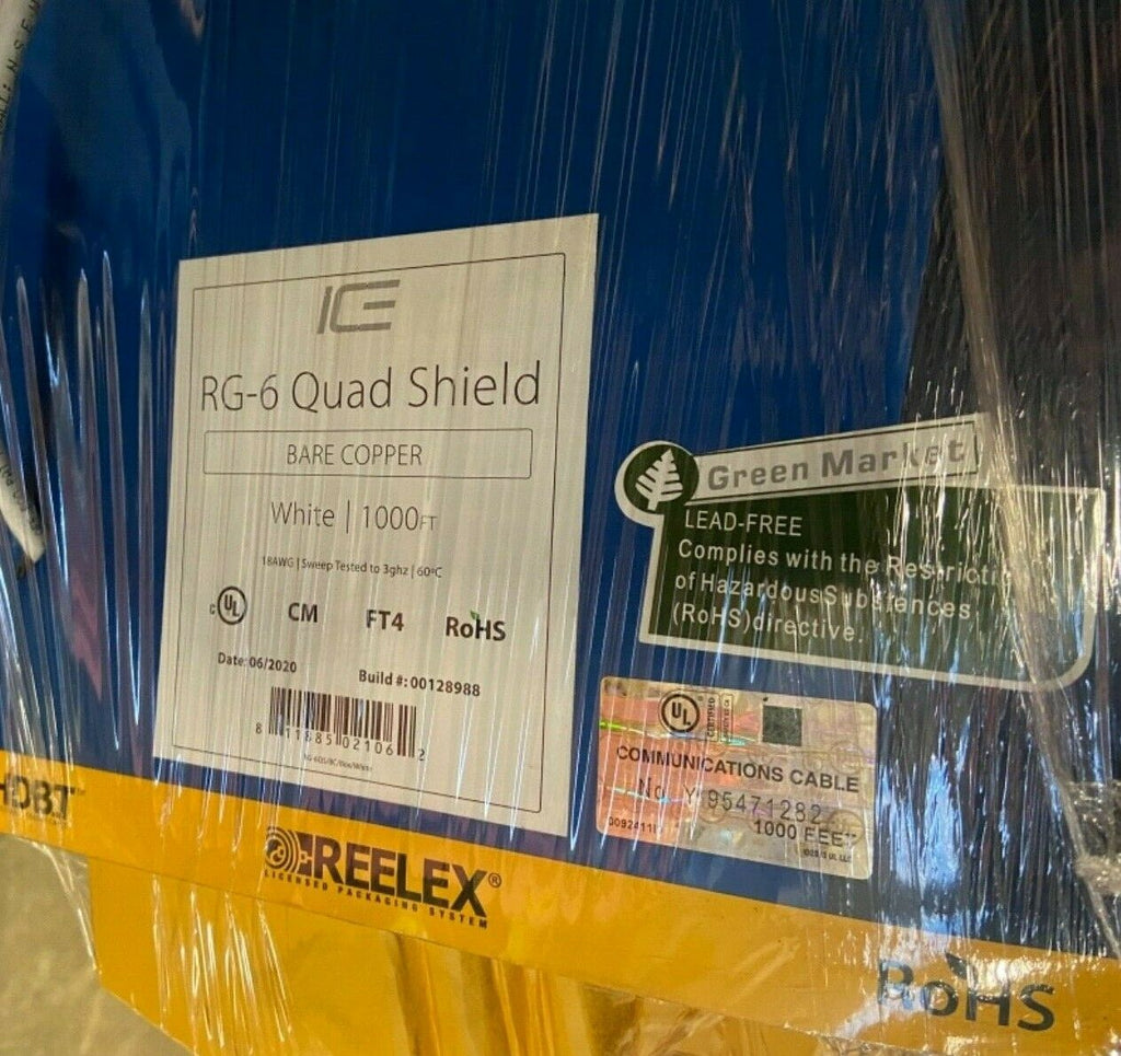 NEW 1000FT RG6 Bulk Coaxial Cable Wire Shield 18AWG White Coax Satellite TV